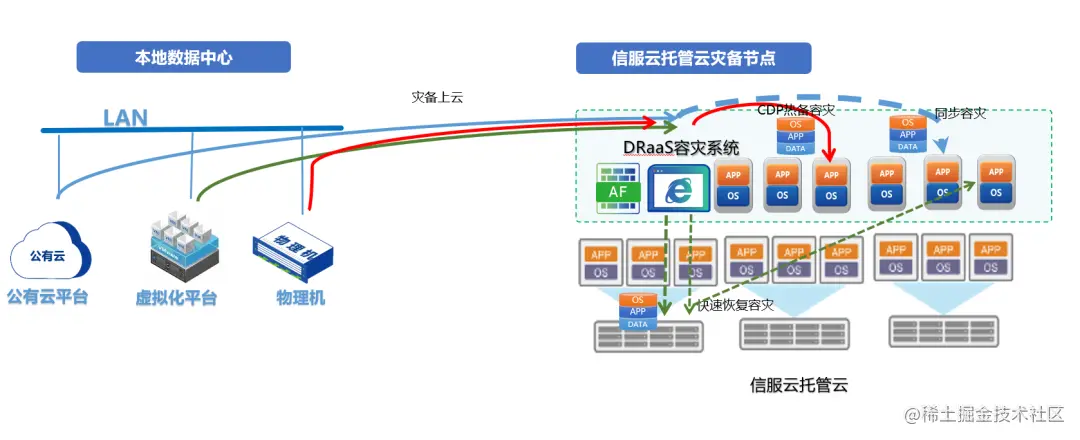 为了保障连续性和可靠性,传统数据中心需要构建灾备数据中心、两地三中心等方案,来保障数据资产安全。而这些方案资金成本高、建设周期长,导致企业经营压力增大。深信服推出DRaaS(灾备即服务)方案,可以对现有公有云、虚拟化平台、物理机等实现灾备上云,用户按需快速搭建,是企业建设第二灾备中心的不二之选。