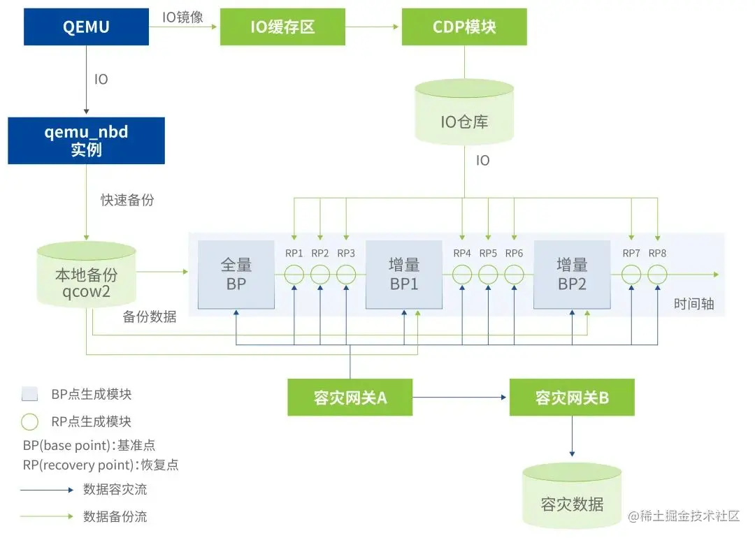 CDP备份数据由RP日志文件和BP备份文件组成,备份实现原理主要为BP点和RP点的生成原理;