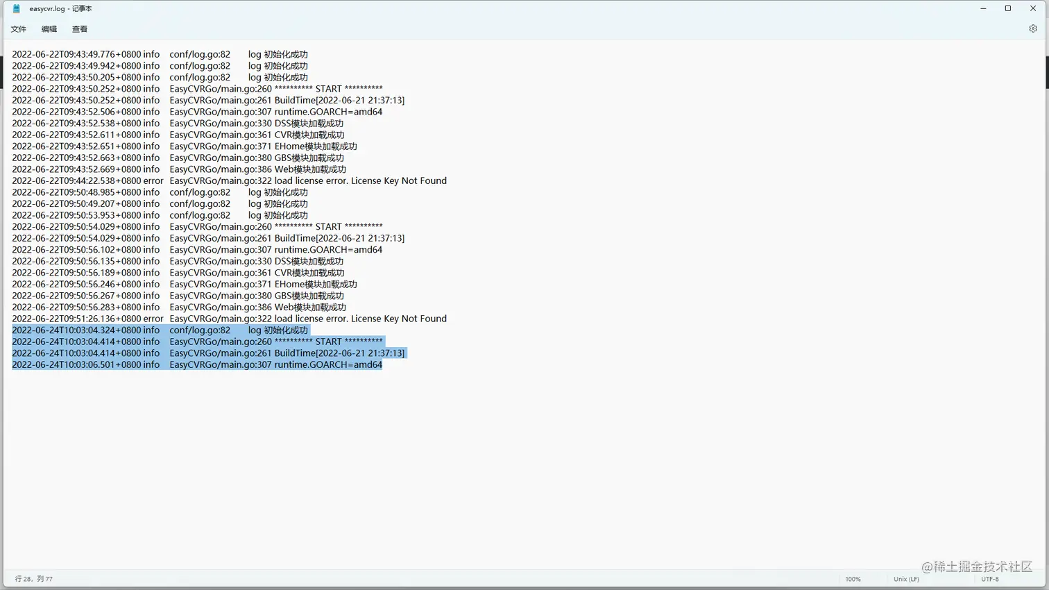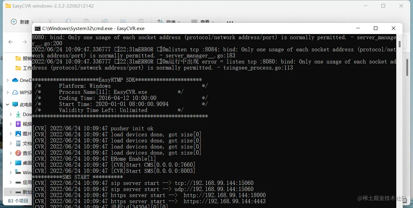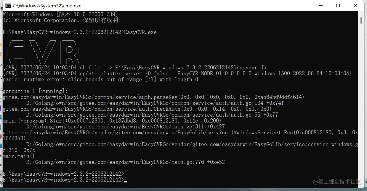 1)服务启动失败后,使用EasyCVR.exe进行启动,查看退出前的最后报错信息: