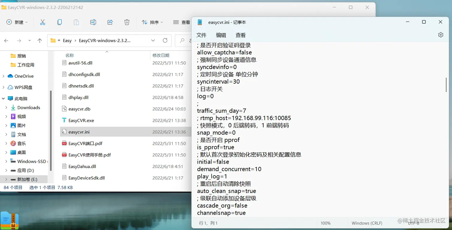 3)一般出现这样的日志报错,就表示会影响全局的配置,影响了服务启动,所以我们查看下配置文件是否存在(easycvr.ini):