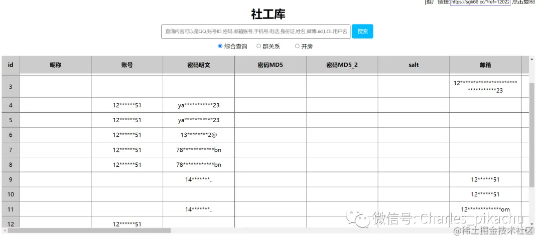 输入QQ号或者手机号就可以查询到他更多的信息了,包括在一些网站或者APP上用过的密码之类的:
