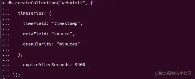 将来有可能改变压缩算法,尽管不鼓励这样做。当你插入一个文档时,时间序列集合不会像其他集合一样自动建立。它必须被明确创建。