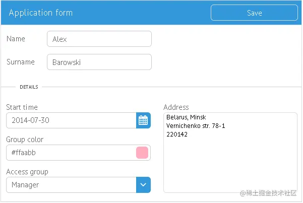 它允许你从多种预定义的表单字段(日期、数字、文本、时间、复选框等)中选择开箱即用的类型。任何字段都可以配备内置或自定义验证和澄清错误的工具提示。Ext JS允许你同时应用MVC和MVVM架构方法。有趣的是,Sencha提供了两种变化的UI工具包(经典和现代)。你还可以利用特殊的开发工具(Sencha Themer、Sencha Architect、Inspector等),使你更容易将Ext JS的表单和其他UI组件纳入你的Web应用。