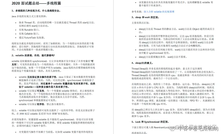 这份面试题囊括了绝大部分的Java技术知识,足够你应付市面上90%以上的面试了。我不知道大家会不会在面试后进行复盘总结,思考面试官的思路。总之,我也帮大家总结起来了,让你在面试的时候可以更清楚的明白面试官的思路,更从容的面对面试官的问题。