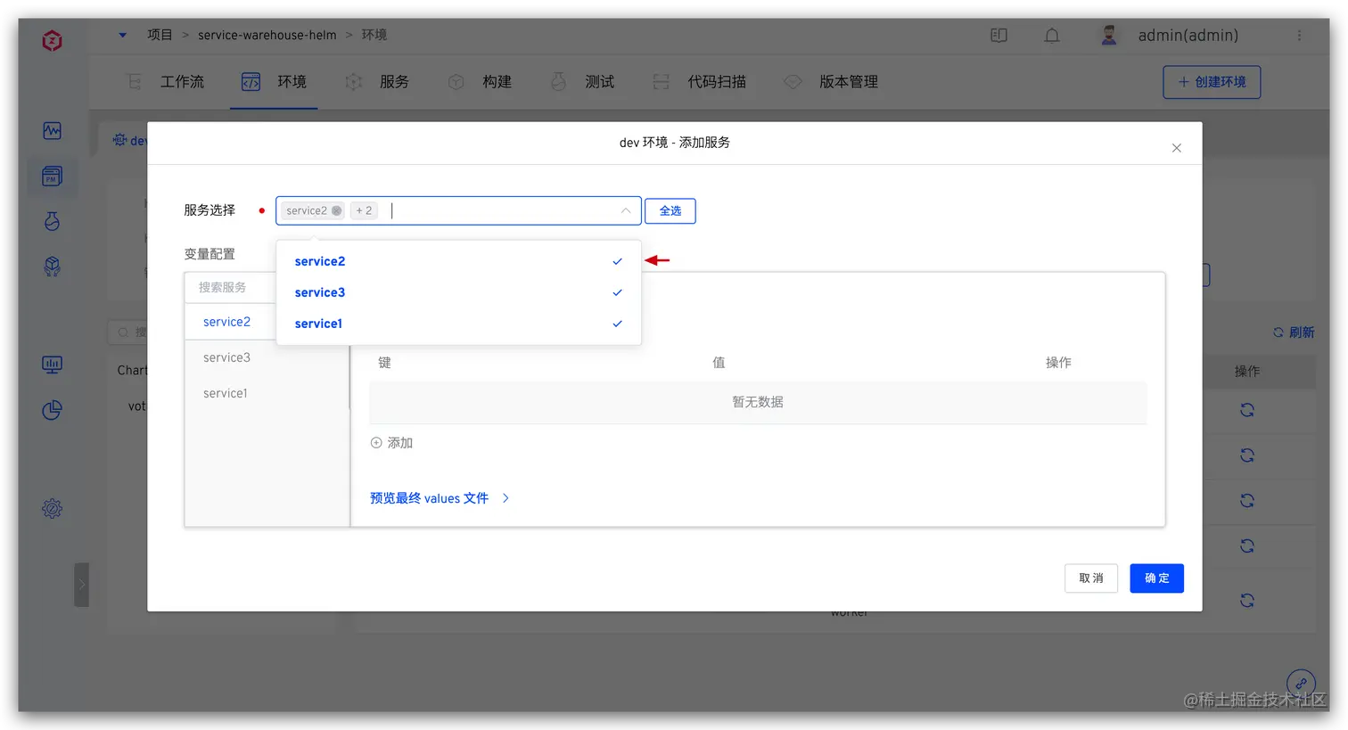 点击加入环境 -> 选择环境,快速将多个服务一键加入到已有环境中。