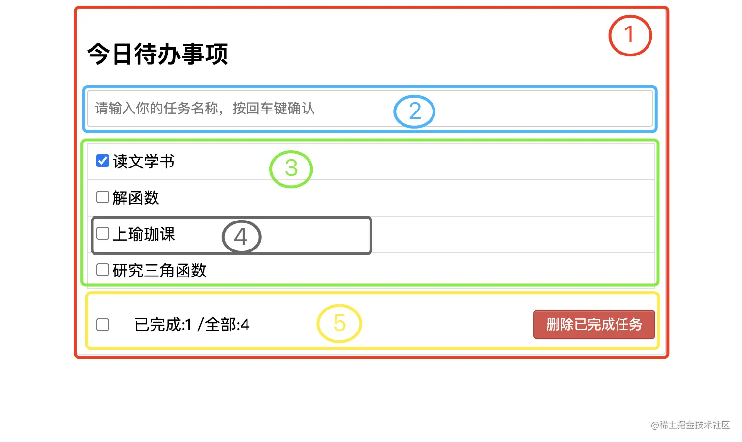 效果图与组件结构图之间的序号是一一对应的,可以对比查看便于更好地理解。