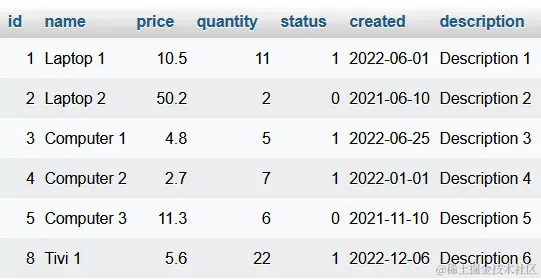 创建名为laravel_db的新数据库。在这个数据库中,创建新的表,命名为产品,如下所示。