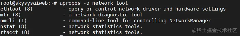还是上面的apropos 'network tool',这个时候我们加上-a的参数: