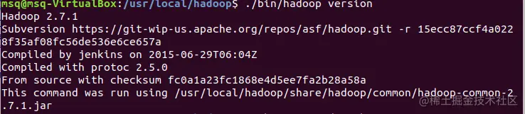 7)进入hadoop 查看版本信息