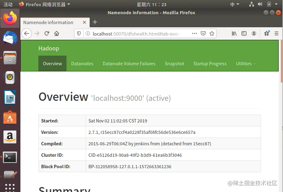 在浏览器中输入:localhost:50070/