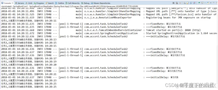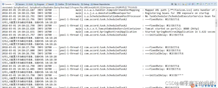 就完成了一个简单的定时任务模型,下面执行springBoot观察执行结果: