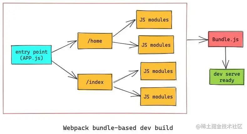 因为这样的处理规则,当保存文件时,整个 JavaScript 包将由 Webpack 重新构建,这就是为什么更改可能需要长达 10 秒才能反映在浏览器中,更新速度会随着应用体积增长而直线下降。