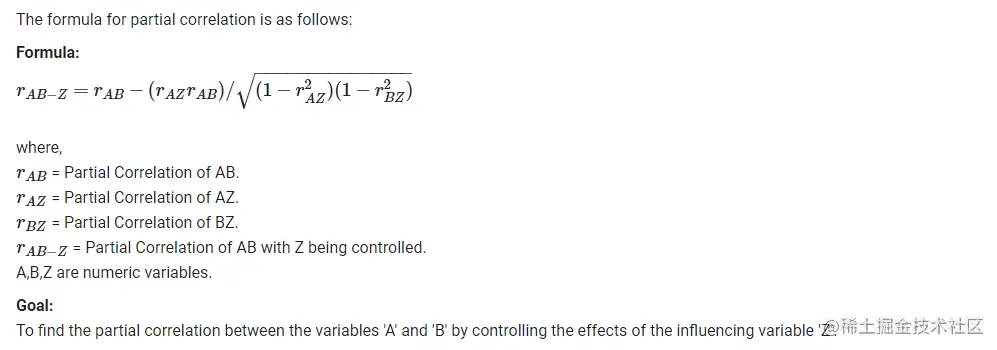 例如,如果有三个变量 "A"、"B"、"Z",如果你想找到 "A "和 "B "之间的关系,并控制 "Z "的影响,你可以使用部分相关。