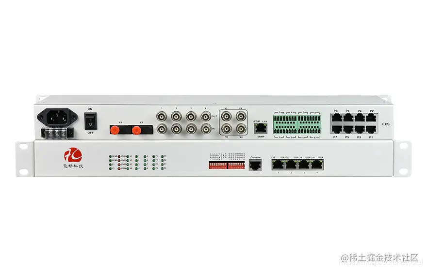 本系列产品,是在该公司研制的专用超大规模集成电路的基础上,研发的点对点多业务光传输设备。此款产品提供4路视频,1-8路电话接口;1-16路开关量接口/1-8路RS232-422-485接口;4路百兆以太网接口,4路百兆以太网每个以太网电口都有自己独立的百兆带宽,所有4路以太网总带宽为400M,通过一根光纤传输完全独立,物理隔离,通过一根光纤传输;2个光接口(可以1+1光备份)等;设备内部电路部分采用全数字电路,整机工作可靠、稳定,功耗低,集成度高,体积小,易于安装维护。
