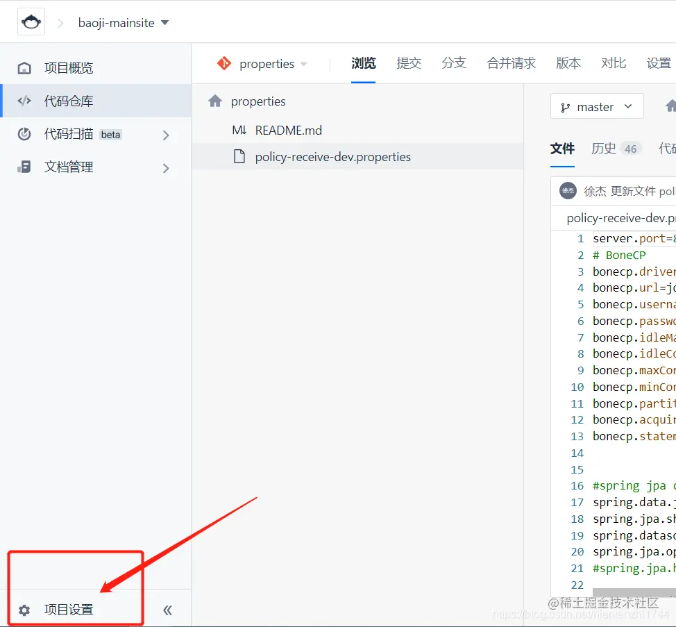 5.1:到代码代码仓库找到项目设置,如下