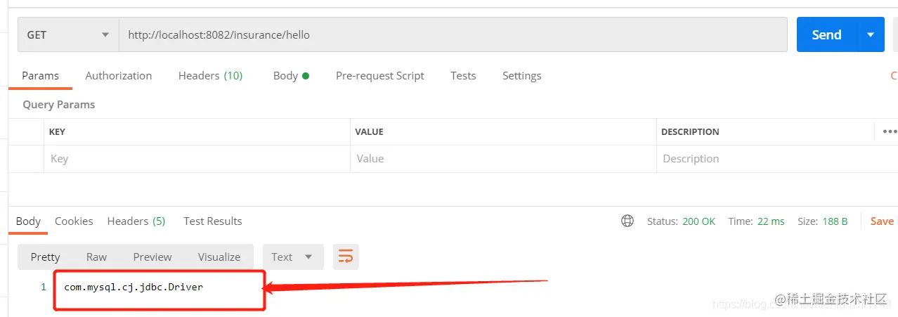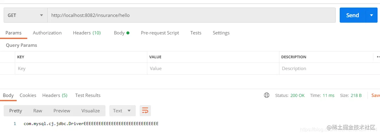 然后我们打开postman,请求业务模块的这个接口,可以看到返回的值正是coding仓库的配置文件的值。