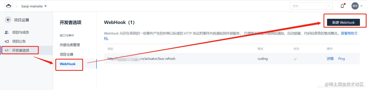 coding上代码仓库的webhook配置