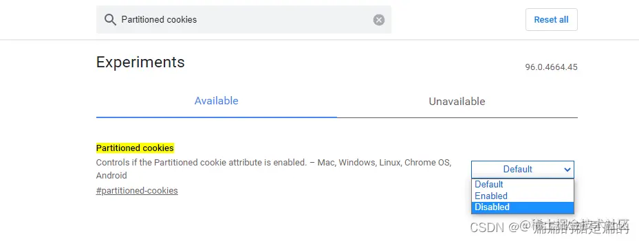 关于谷歌浏览器更新后无法手动修改cookie,修改cookie报红的解决方式 SunnyY 2022-06-29 1,026 阅读1分钟 参考链接 1、打开谷歌浏览器访问 chrome://flags/ 2、 把 Partitioned cookies 项将设置项改为Enabled 3、重启浏览器 但是为了保险一点,还是用storage存储的好