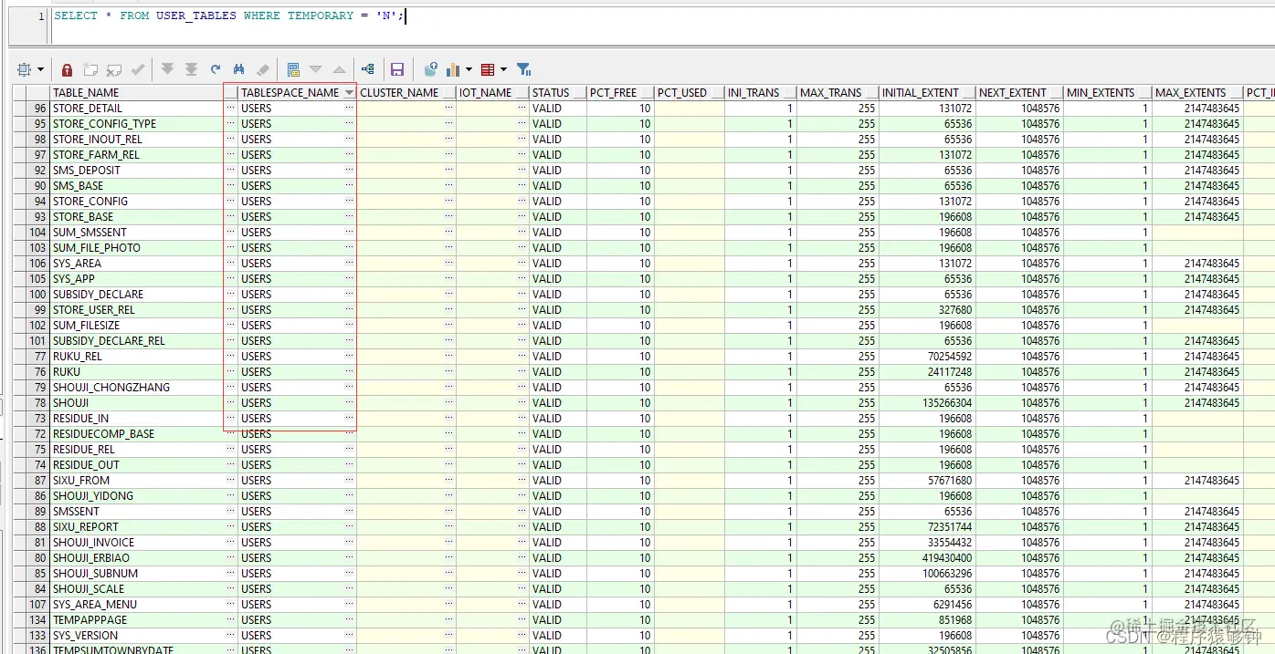 --拼接修改表空间语句,查出来的数据中存在多个表空间的时候TABLESPACE_NAME条件用IN