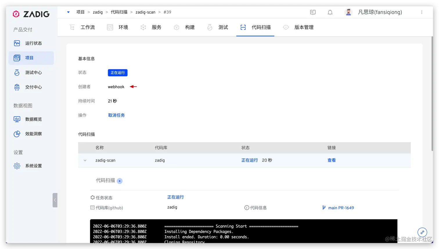 除了在 Zadig 上手动执行扫描任务检查代码质量,还可以基于相关代码变更事件配置触发器,利用 Webhook 的能力自动执行代码扫描。