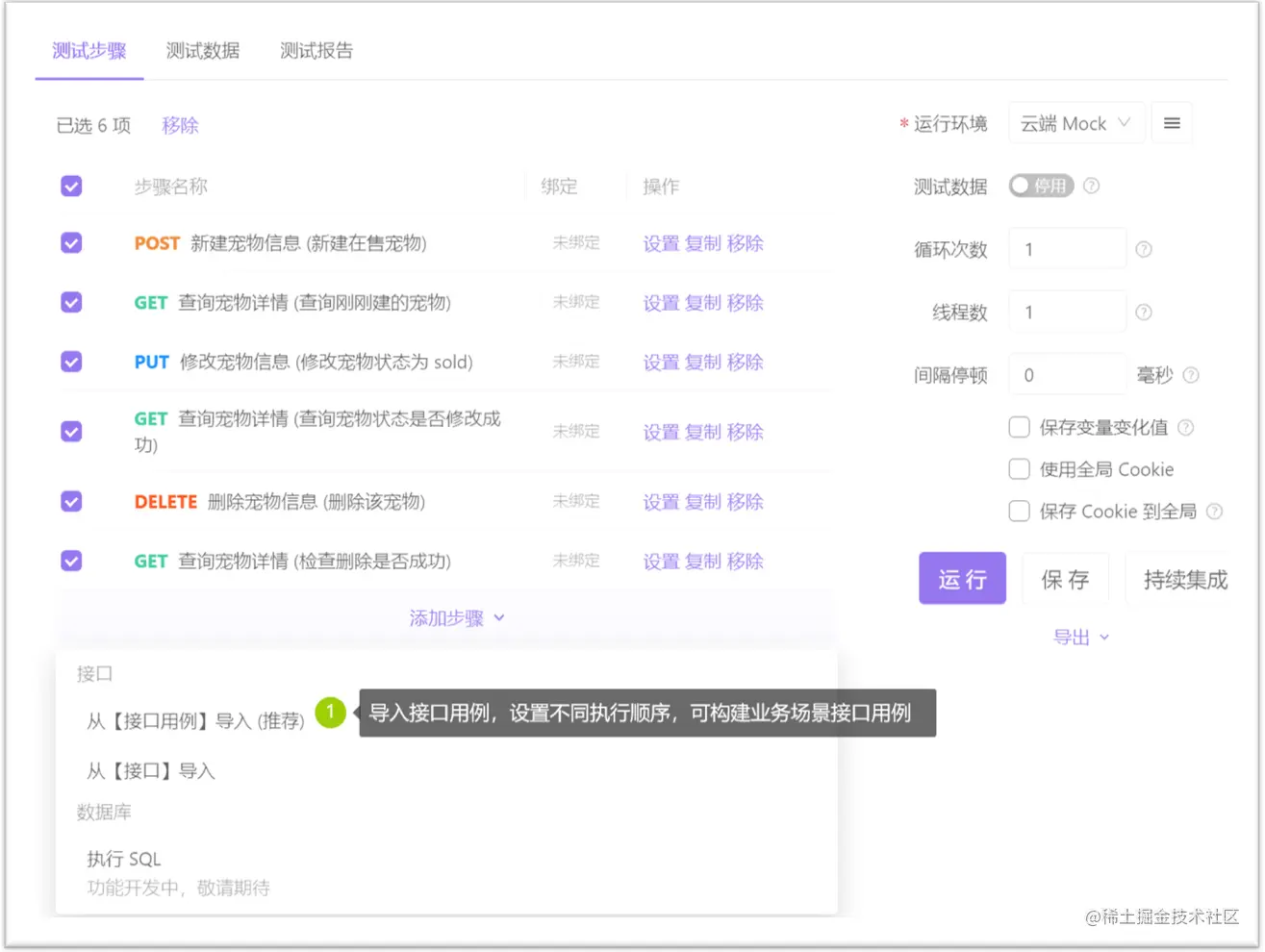 另外它还支持相应的数据类型校验和请求参数使用动态值