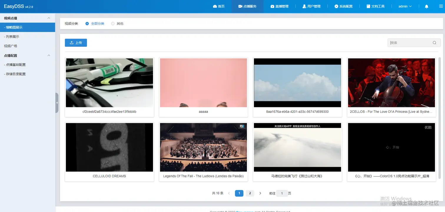 EasyDSS视频直播点播平台支持Flash、H5播放,可兼容多操作系统,平台可支持视频直播、点播、转码、分发、存储等功能,支持用户自行上传视频文件,以及将上传的点播文件作为虚拟直播进行播放等等。EasyDSS平台能胜任高强度、大数据量的视频资源转码工作,支持将各种格式的视频资源进行快速转码。