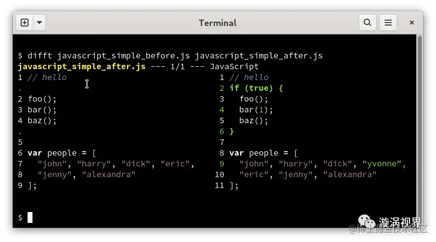 difftastic5 是一个使用 Rust 开发的能理解语义的 diff 工具。
