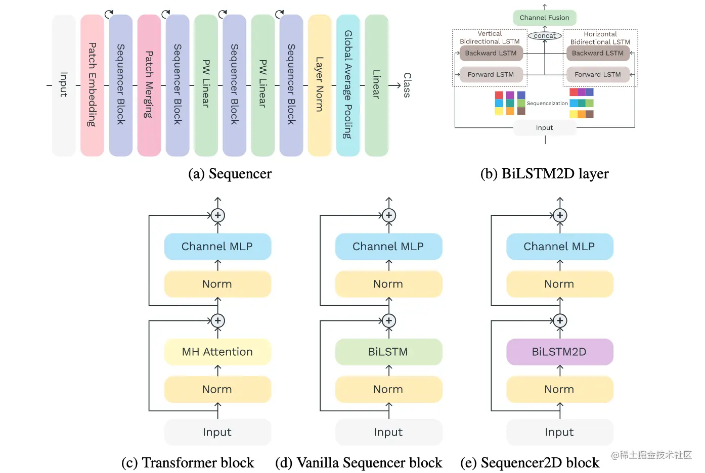 论文摘要:In recent computer vision research, the advent of the Vision Transformer (ViT) has rapidly revolutionized various architectural design efforts: ViT achieved state-of-the-art image classification performance using self-attention found in natural language processing, and MLP-Mixer achieved competitive performance using simple multi-layer perceptrons. In contrast, several studies have also suggested that carefully redesigned convolutional neural networks (CNNs) can achieve advanced performance comparable to ViT without resorting to these new ideas. Against this background, there is growing interest in what inductive bias is suitable for computer vision. Here we propose Sequencer, a novel and competitive architecture alternative to ViT that provides a new perspective on these issues. Unlike ViTs, Sequencer models long-range dependencies using LSTMs rather than self-attention layers. We also propose a two-dimensional version of Sequencer module, where an LSTM is decomposed into vertical and horizontal LSTMs to enhance performance. Despite its simplicity, several experiments demonstrate that Sequencer performs impressively well: Sequencer2D-L, with 54M parameters, realizes 84.6% top-1 accuracy on only ImageNet-1K. Not only that, we show that it has good transferability and the robust resolution adaptability on double resolution-band.