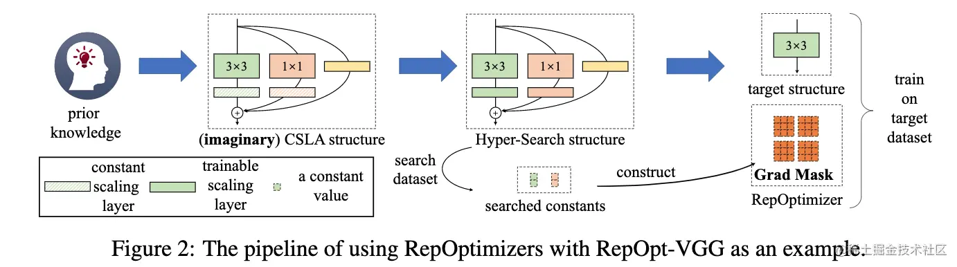 神经网络中精心设计的结构反映了纳入模型中的先验知识。然而,虽然不同的模型有不同的先验知识,但我们习惯于用与模型无关的优化器(如SGD)来训练它们。在本文中,我们提出了一种新的范式,将特定模型的先验知识纳入优化器,并使用它们来训练通用(简单)模型。作为一种实现方式,我们提出了一种新的方法,通过根据一组特定模型的超参数修改梯度来增加先验知识,这被称为梯度再参数化,优化器被称为RepOptimizers。为了使模型结构极其简单,我们把重点放在一个VGG风格的普通模型上,并展示了这样一个用RepOptimizer训练的简单模型,我们称之为RepOpt-VGG,其性能与最近设计好的模型相当。从实用的角度来看,RepOpt-VGG是一个有利的基础模型,因为它结构简单,推理速度快,训练效率高。与结构性重新参数化相比,结构性重新参数化是通过构建额外的训练时结构将先验因素加入到模型中,RepOptimizers不需要额外的前向/后向计算,并解决了量化问题。代码和模型可在 github.com/dingxiaoh/r… 公开。