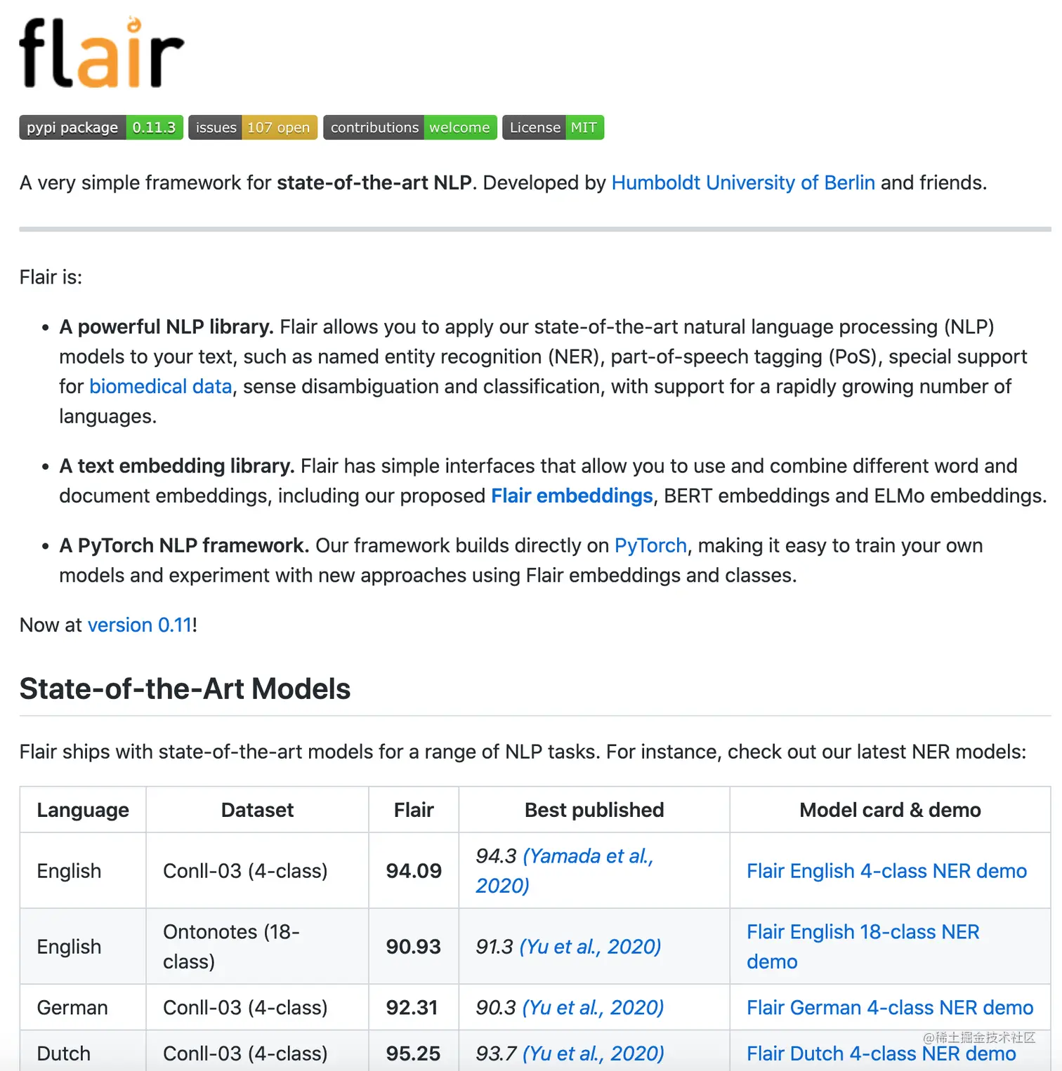 工具框架:flair - 集成最先进NLP技术的简单框架(Python)