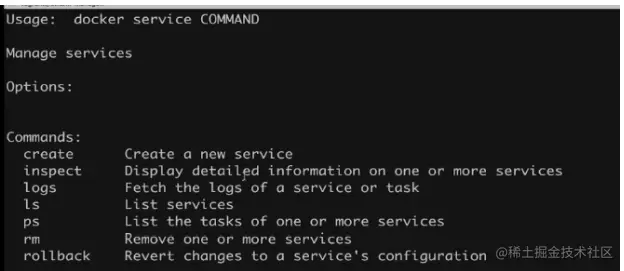 我们看一下service相关的操作,总体来讲我们可以使用service create相关操作,这个类似docker run,但是我们现在在cluster创建service,而这个service不一定运行在本地,所以很少会用docker run这个命令。