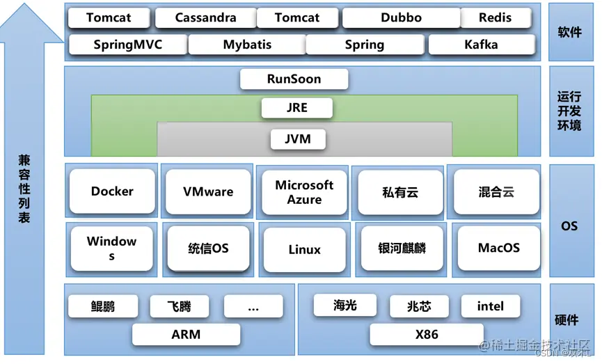 再说一下其他厂商的JDK,虽然各大厂商都在原OpenJDK定制化开发了不同版本的JDK,也在一些地方做出不同的性能优化,但是不同厂商自主研发的JDK都有不同的侧重点,有的是与自研中间件做捆绑,突出中间件性能而做的二次研发,有的则是在某一操作系统使用性能更高。但是在面对当前不同的操作系统,软硬件兼容,楠竹(RunSoon)JDK都略胜一筹。