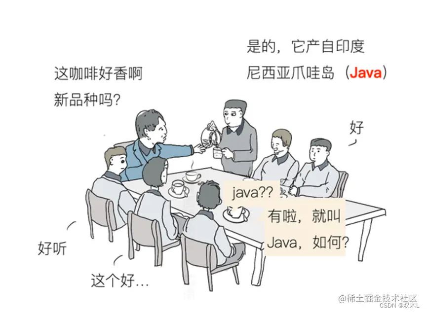 Java是印度尼西亚爪哇岛的英文名称,因盛产咖啡而闻名。就这样,在一次偶然的喝咖啡的下午,一个即好听又好记、具有强大的生命力的编程语言Java诞生了
