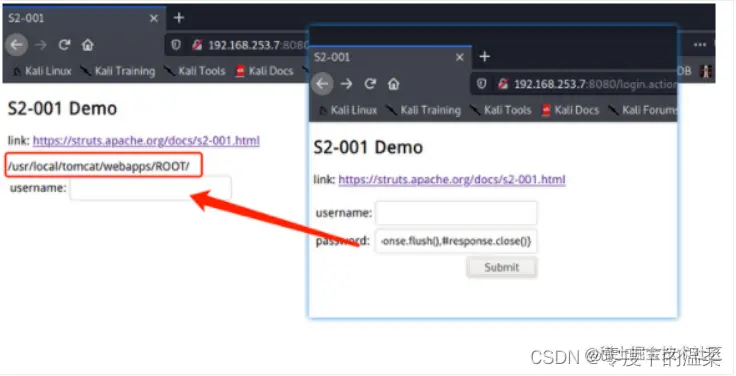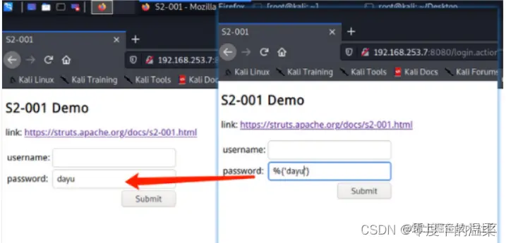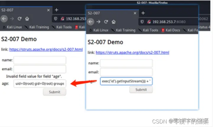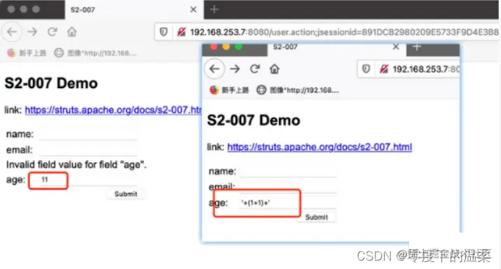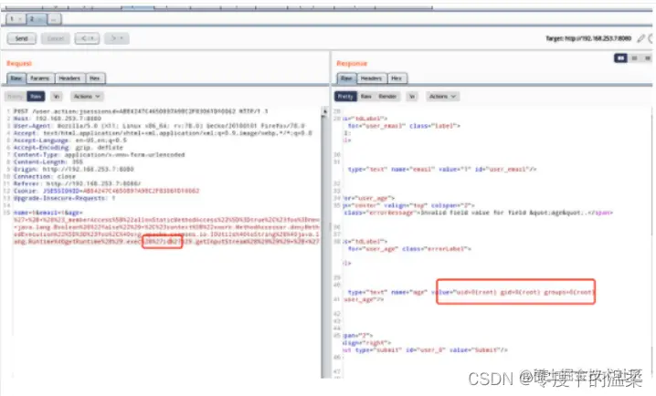 该漏洞因用户提交表单数据并且验证失败时,后端会将用户之前提交的参数值使用OGNL表达式%{value}进行解析,然后重新填充到对应的表单数据中。如注册或登录页面,提交失败后一般会默认返回之前提交的数据,由于后端使用%{value}对提交的数据执行了一次OGNL 表达式解析,所以可以直接构造 Payload进行命令执行。