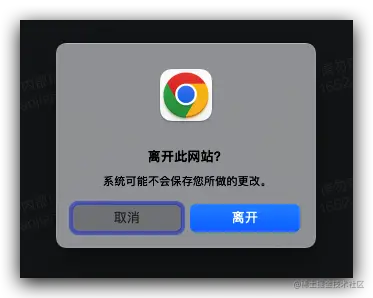切换导航会使页面触发beforeunload 事件,我们知道,网页可以通过注册beforeunload事件来触发一个页面离开前的待处理弹窗,这样能够很好的避免用户数据丢失。