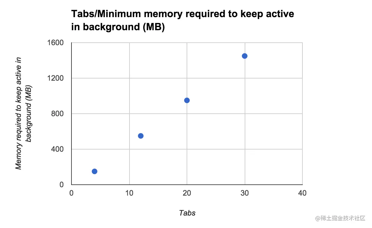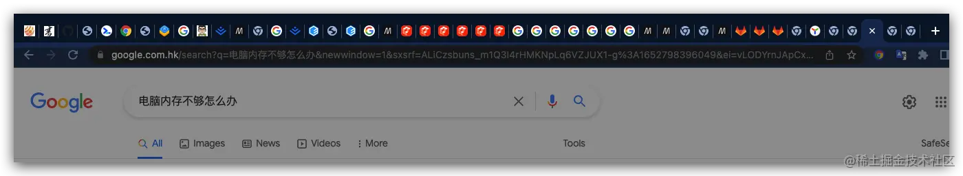 而我们要知道Chrome每个选项卡的网页通常至少需要 50MB内存,如果打开了 10 个选项卡,那么至少要花费 450MB 的内存来保持后台选项卡状态,随着时间的推移,内存开销会变得非常大。