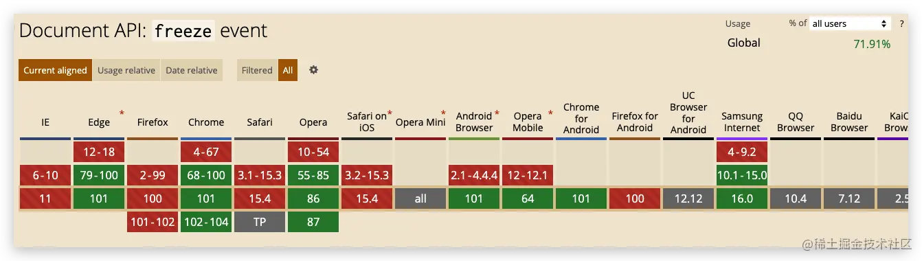 Frozen和Discarded在19年已经进入到了草案阶段,目前在Chrome上支持较好,Safari和Firefox还没有兼容。