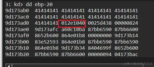 这里的memcpy复制的内容填充满可以填充到0x916aeab0,距离返回地址0x916aead4还有0x20+4个字节