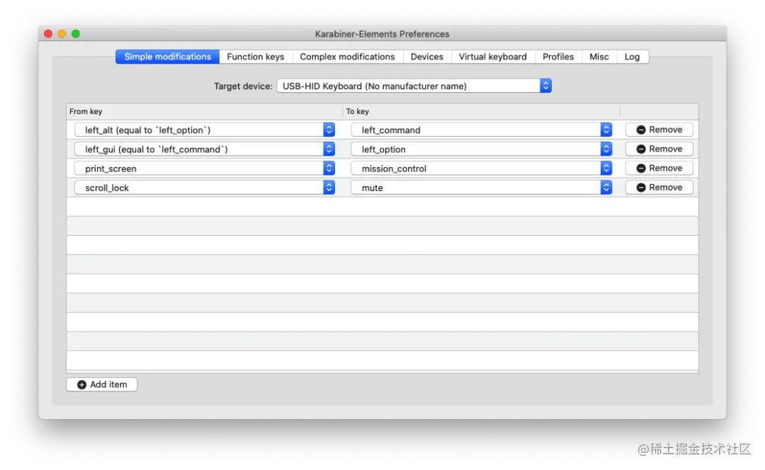 为什么推介这个软件呢,是因为在下原来的机械键盘的按键,连上 Mac 之后键位和常用键位不一致,所以使用 Karabiner 更改键位到自己常用键位(在下的 ikbc c87 的 control 和 option 键是反过来的)。除此之外,还可以把键盘上一些不用的键映射成自己希望的,可以说是一个好用的键盘映射工具了。