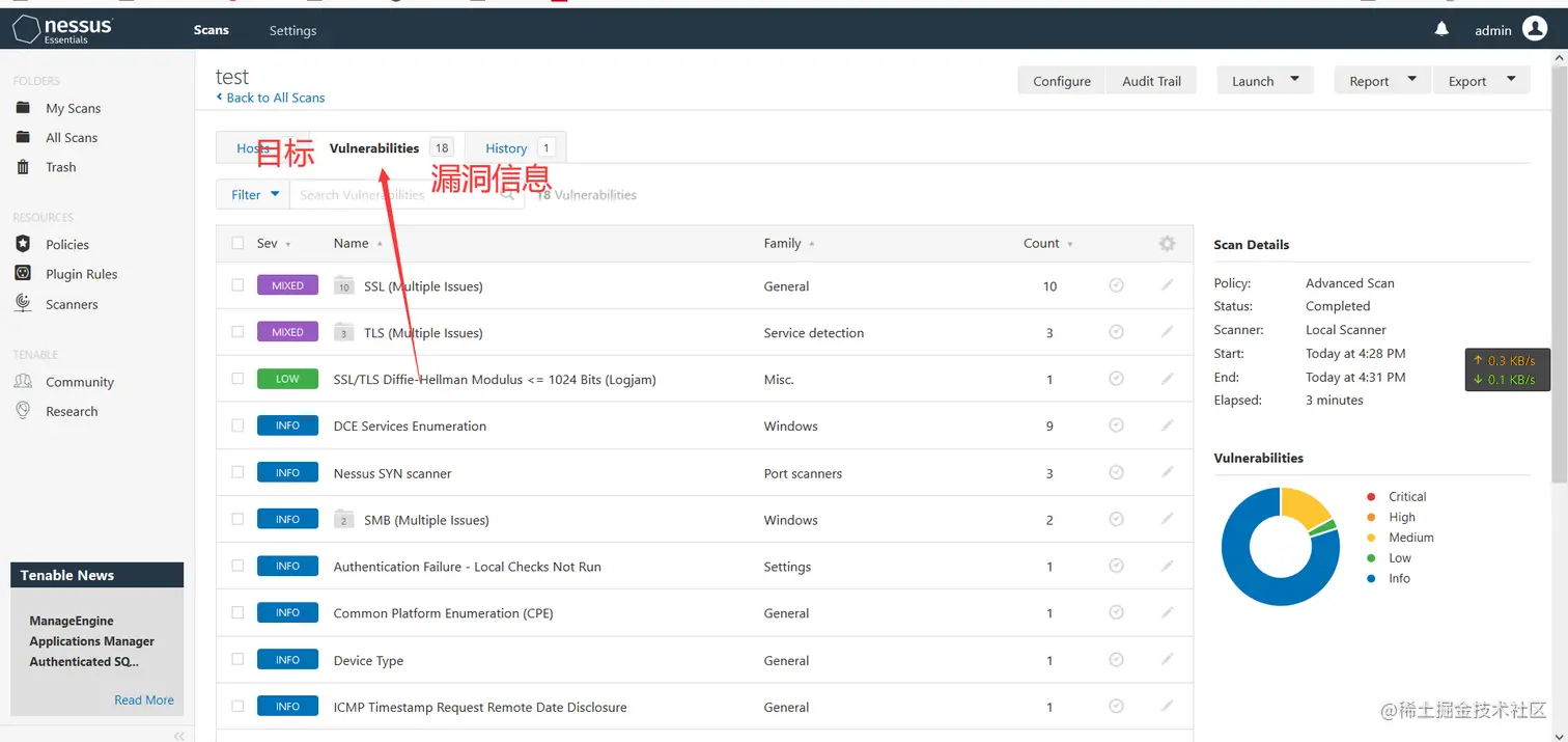 浏览器访问:https://ip:8834(注意是https),账号:admin 密码:admin