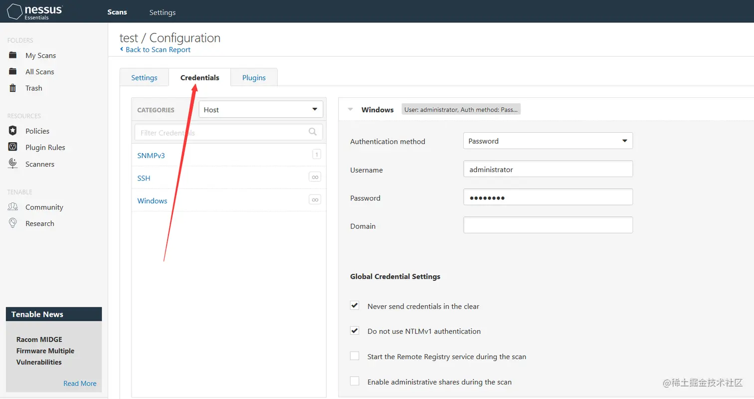 3.如果有目标的登录账号或密码可以在Credentials选项中进行配置,Windows就填Windows,Linux就填Linux。
