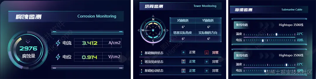海上风机海缆监测模块可通过接口获取传感器的数据,对海底电缆的温度和电压进行实时监控。判断海缆集线电路是否异常,为海缆故障起到及时预警的作用。