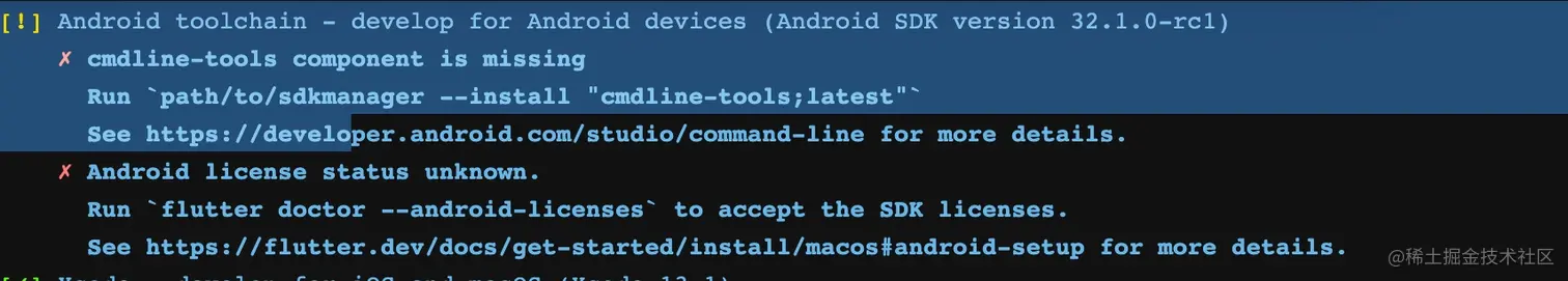 - 根据提示在命令行打出 flutter doctor --android-licenses
