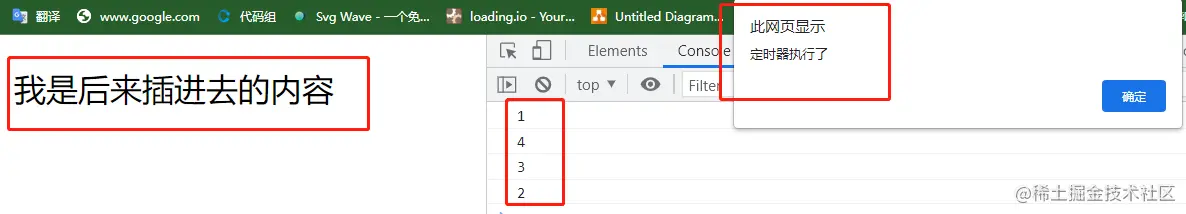 这里是因为定时器和Promise之间是有一个DOM渲染的。我们来改造一下这个demo测试一下
