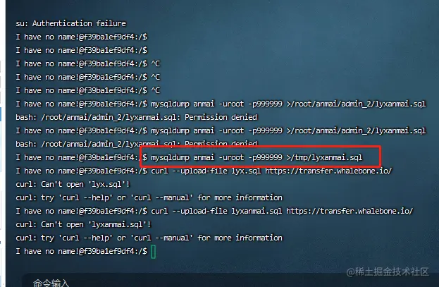 docker备份MySQL lyx32609 2022-06-30 104 阅读1分钟 1容器里备份 docker ps docker exec -it f39ba1ef9df4 /bin/bash 2容器里curl上传sql文件,得到连接 3本地或宿主机内下载