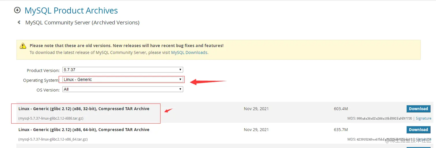 1、下载MySQL版本