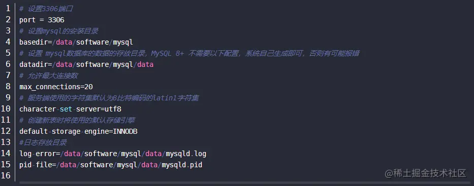2)在系统中新建/etc/my.cnf,文件内容如下,目录可改成本机的: