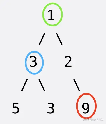 示例:输入: root = [1,3,2,5,3,null,9] 输出: [1,3,9]